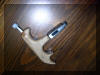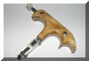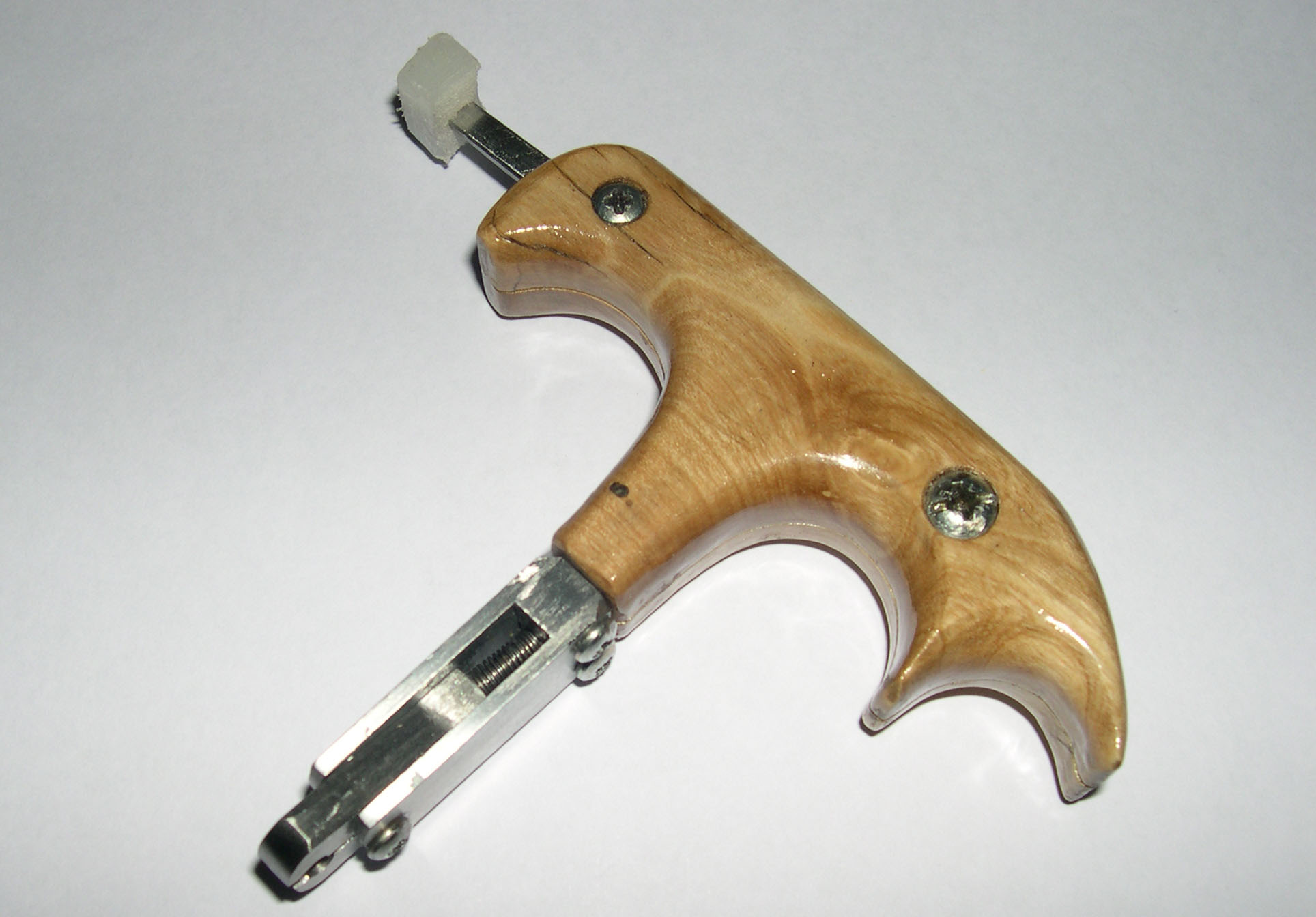 La parte metálica del disparador se gira para poner la mano en la posición que se desee, pudiendo disparar la flecha desde cualquier posición.