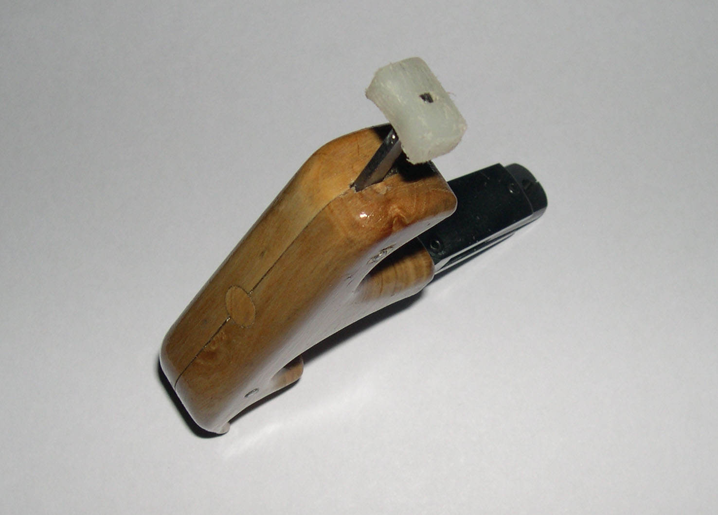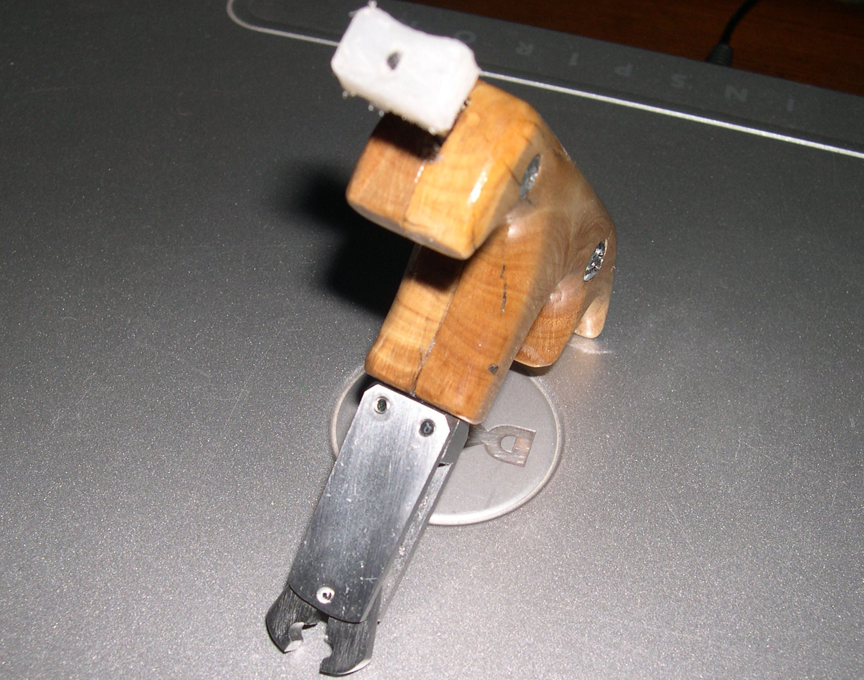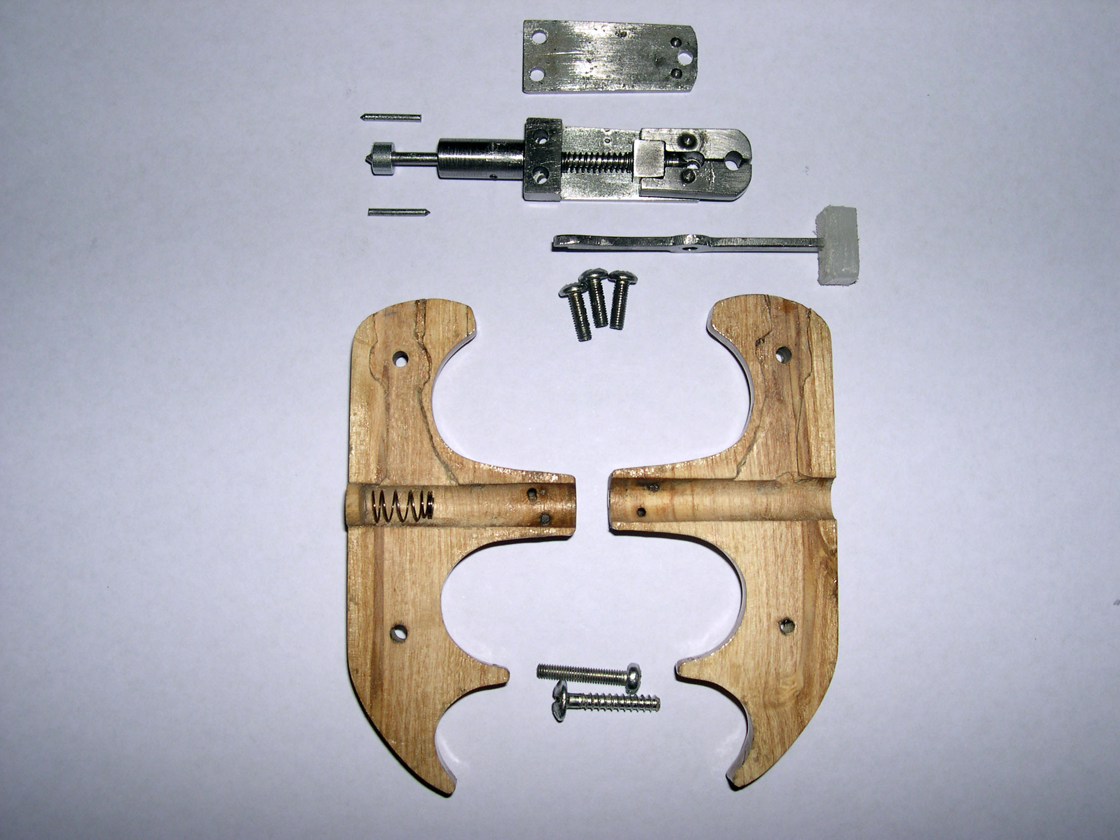 Construido con trozos de barra de hierro, clavo, muelles, tornillos, plancha hierro 2,5 mm y madera de olivo.