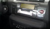 Otro soporte, aún más sencillo, construido con una chapa de aluminio como el anterior, no lleva revestimiento ya que la funda del propio móvil le protege. Va apoyado en la ranura de la consola y solo se sujeta por las esquinas superiores.